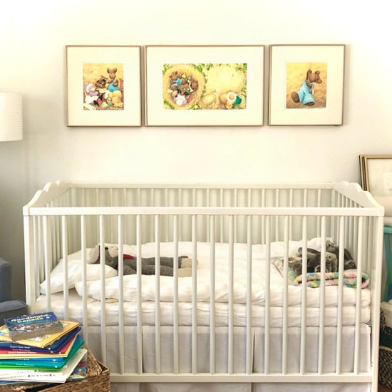Nursery images from Elliot Digs for Treasure, by Andrea Beck, originally published by Kids Can Press. From $32.
