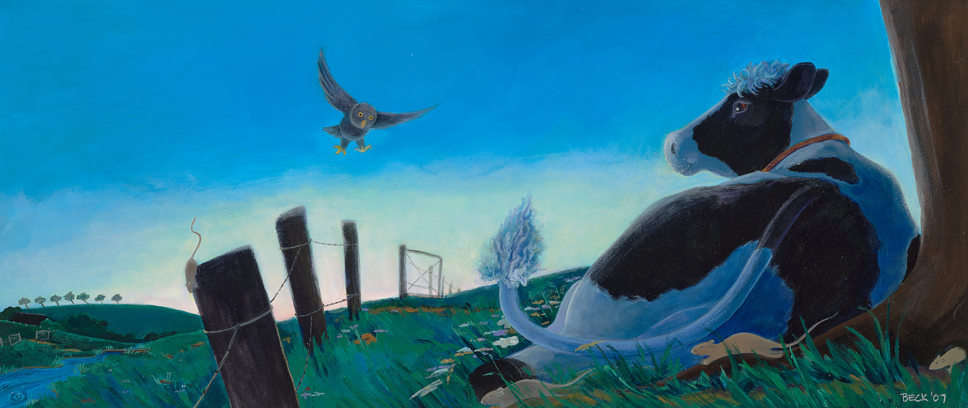 This beautiful painting shows soulful Buttercup enjoying the transition from day to night.