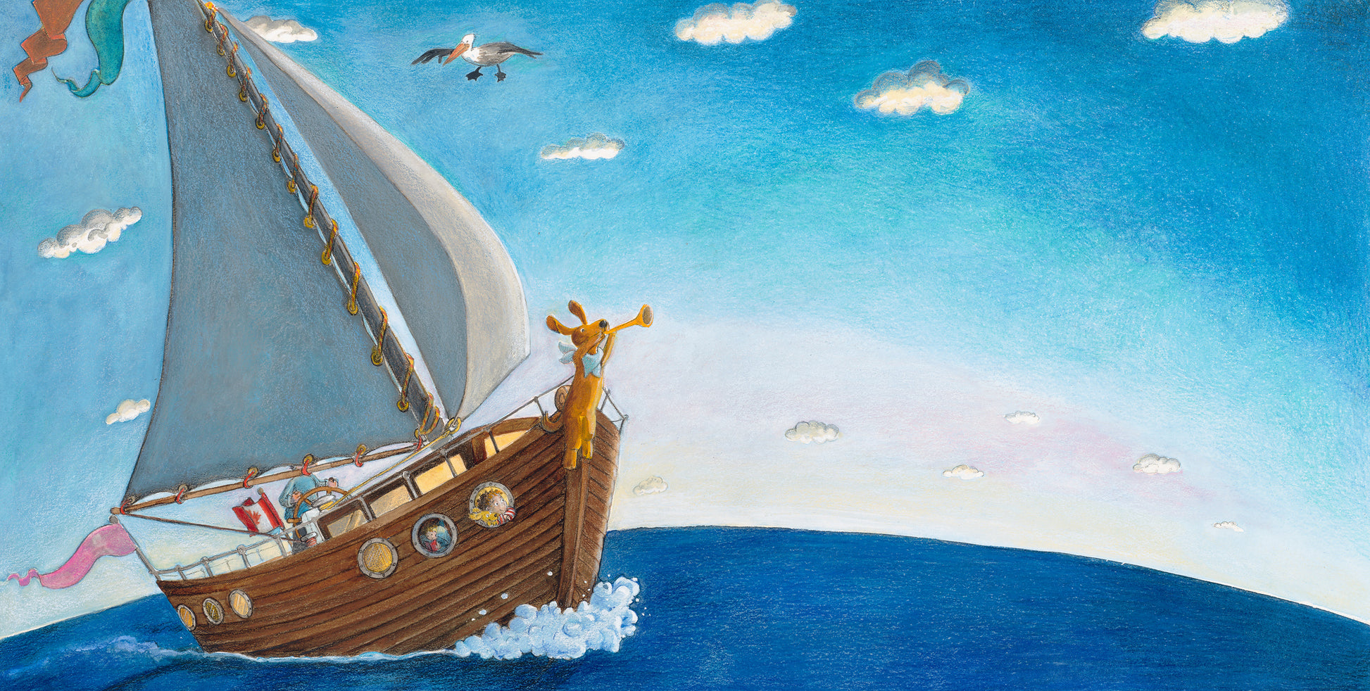 This dreamy childlike art, filled with imagination of life at sea, is from the book Goodnight, World by Andrea Beck.