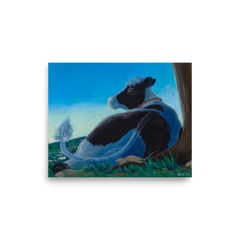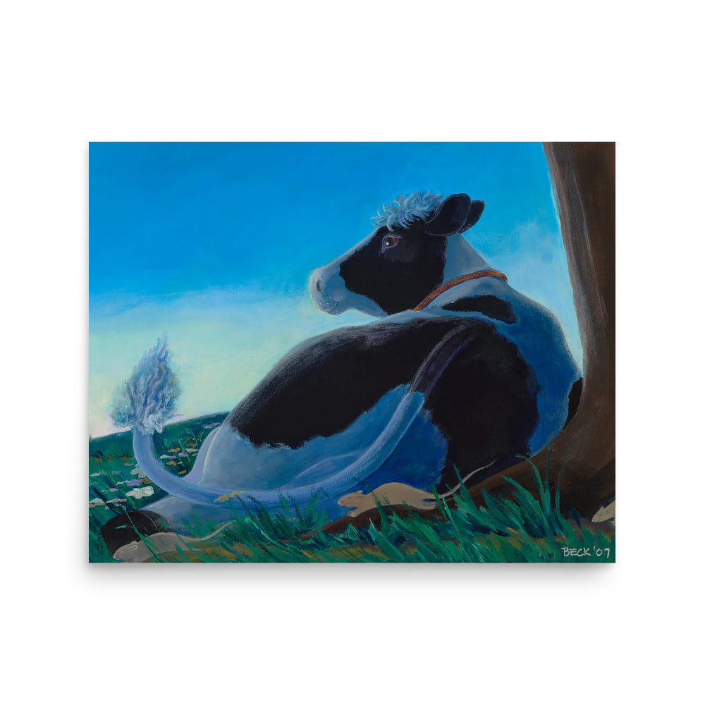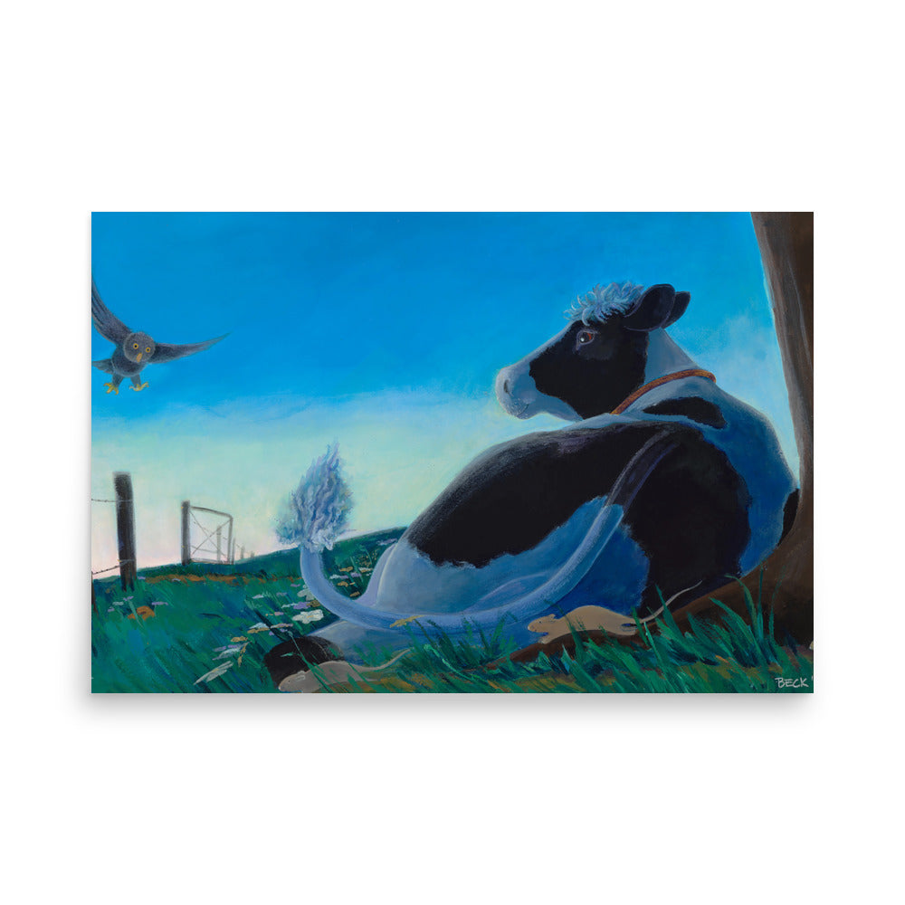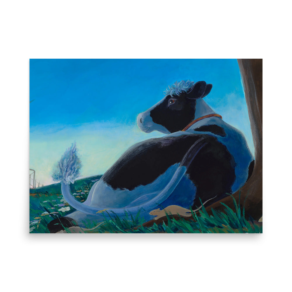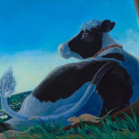 "I love the dark. It creeps up on me like the rising tide of a gentle sea." This beautiful painting shows soulful Buttercup enjoying the transition from day to night.